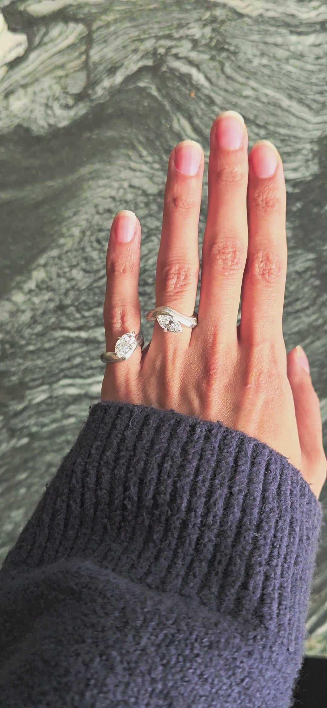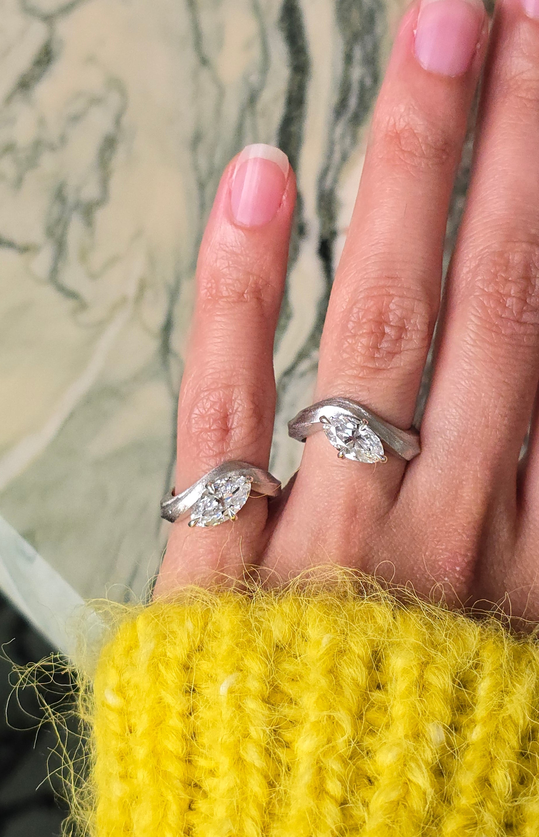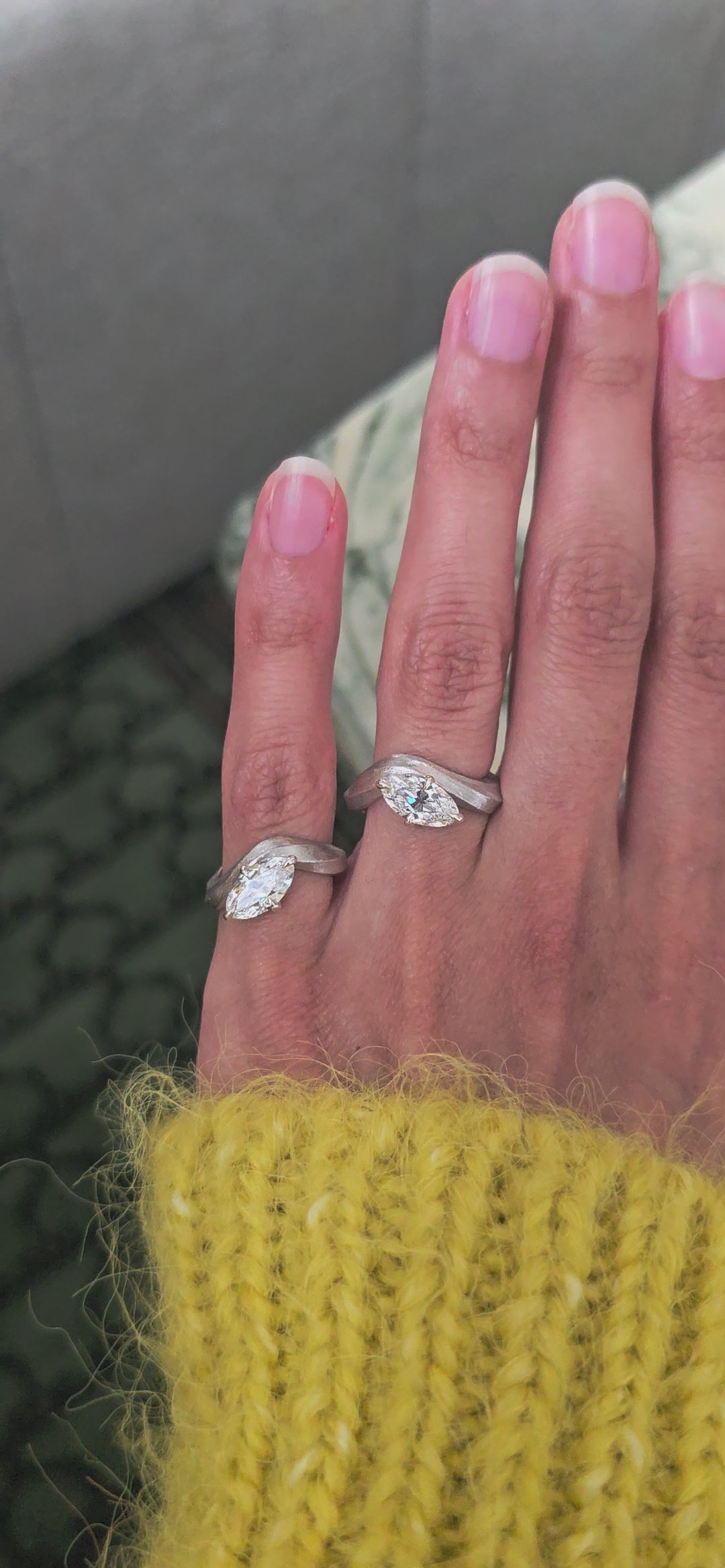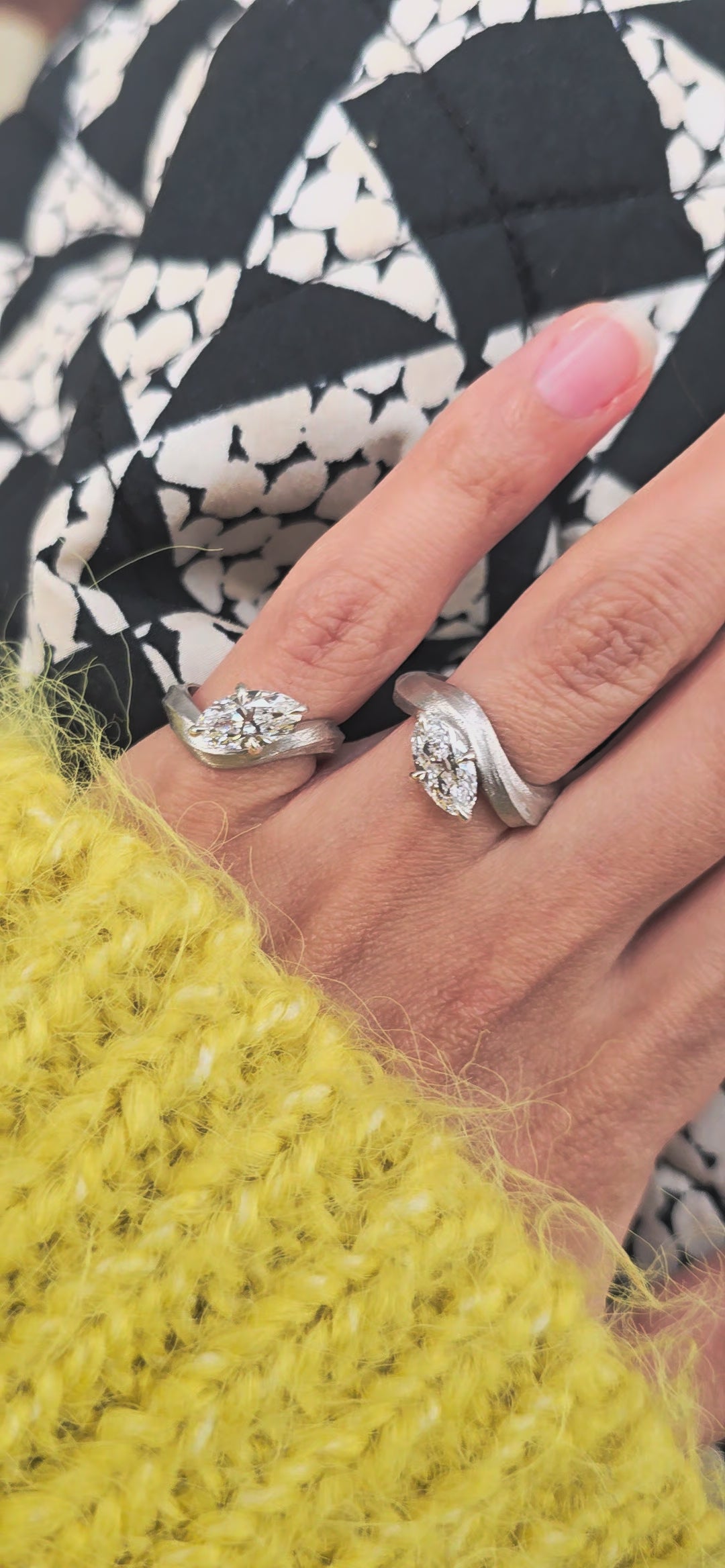 A derivative of our Halston ring, this new style features a kinetic band creating the illusion of movement in metal. Faustine is our take on the asymmetric silhouette currently on-trend.