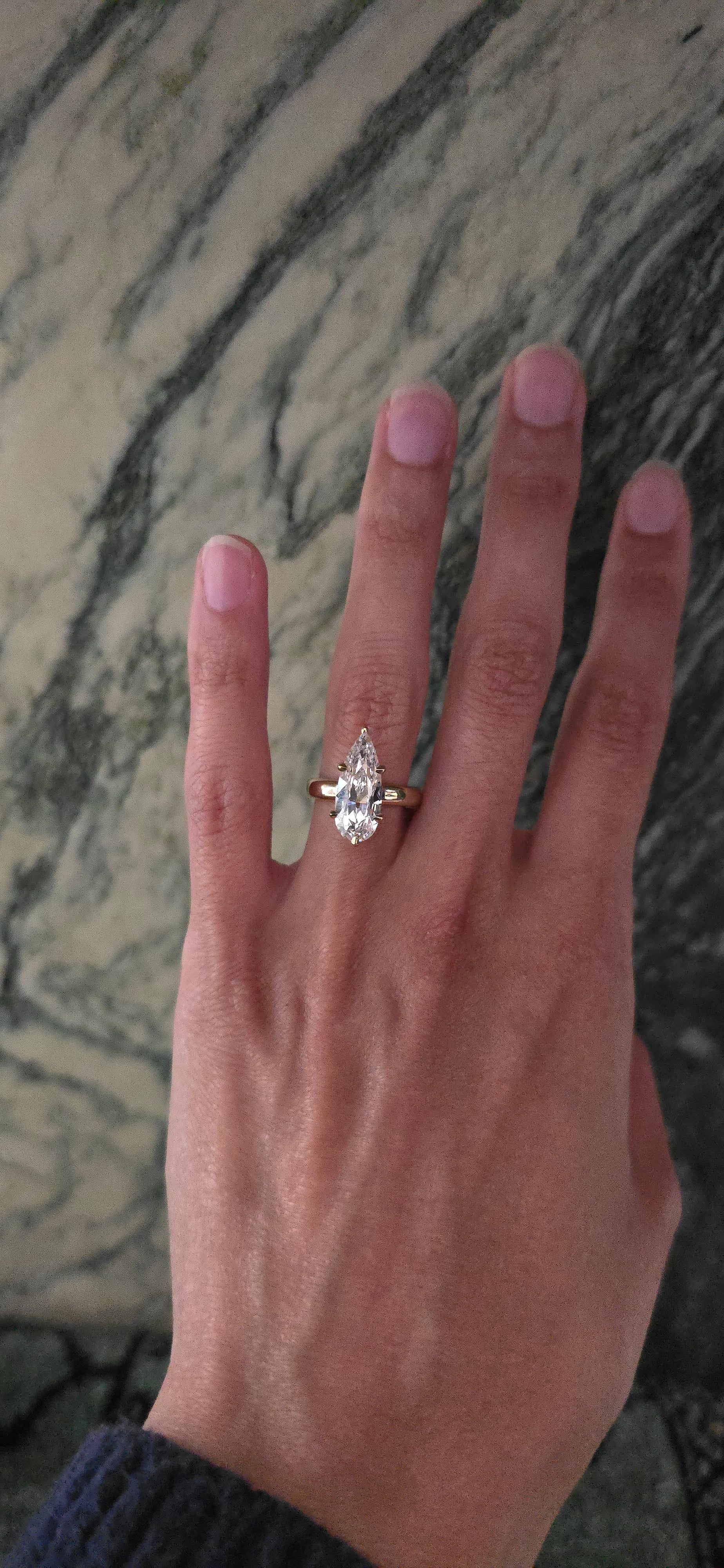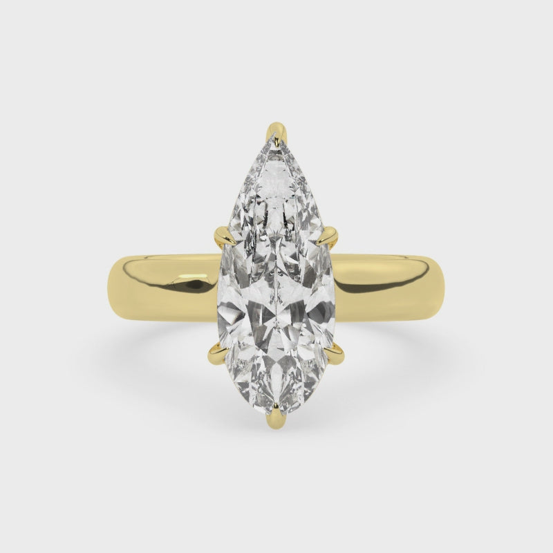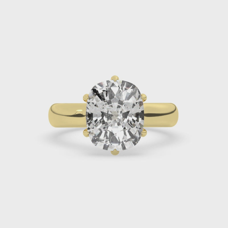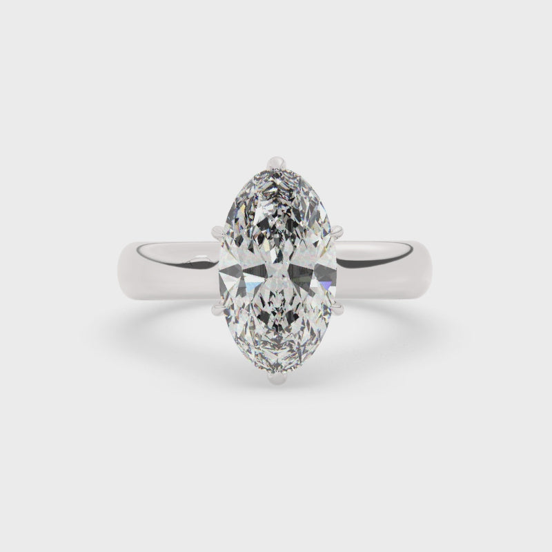 Signe features a 3mm rounded comfort-fit shank and a multi-claw prong setting. The basket is designed for a flush fit with most bands. Minimalist, modern, and timeless.